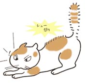 ・シューッ、毛を逆立て、尾を膨らませ威嚇しています